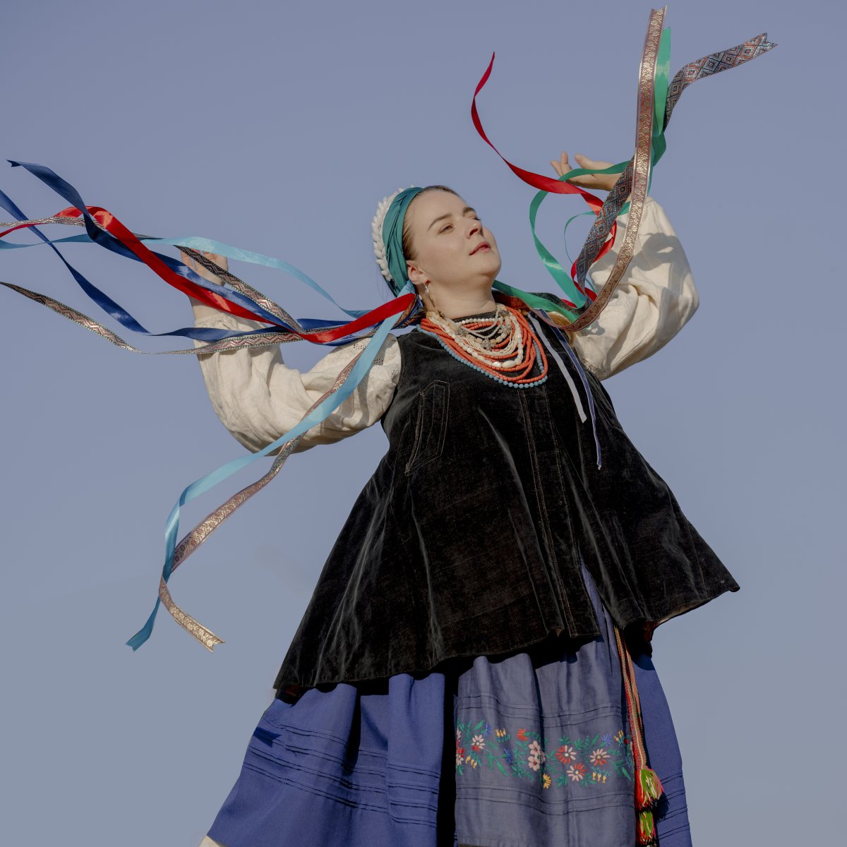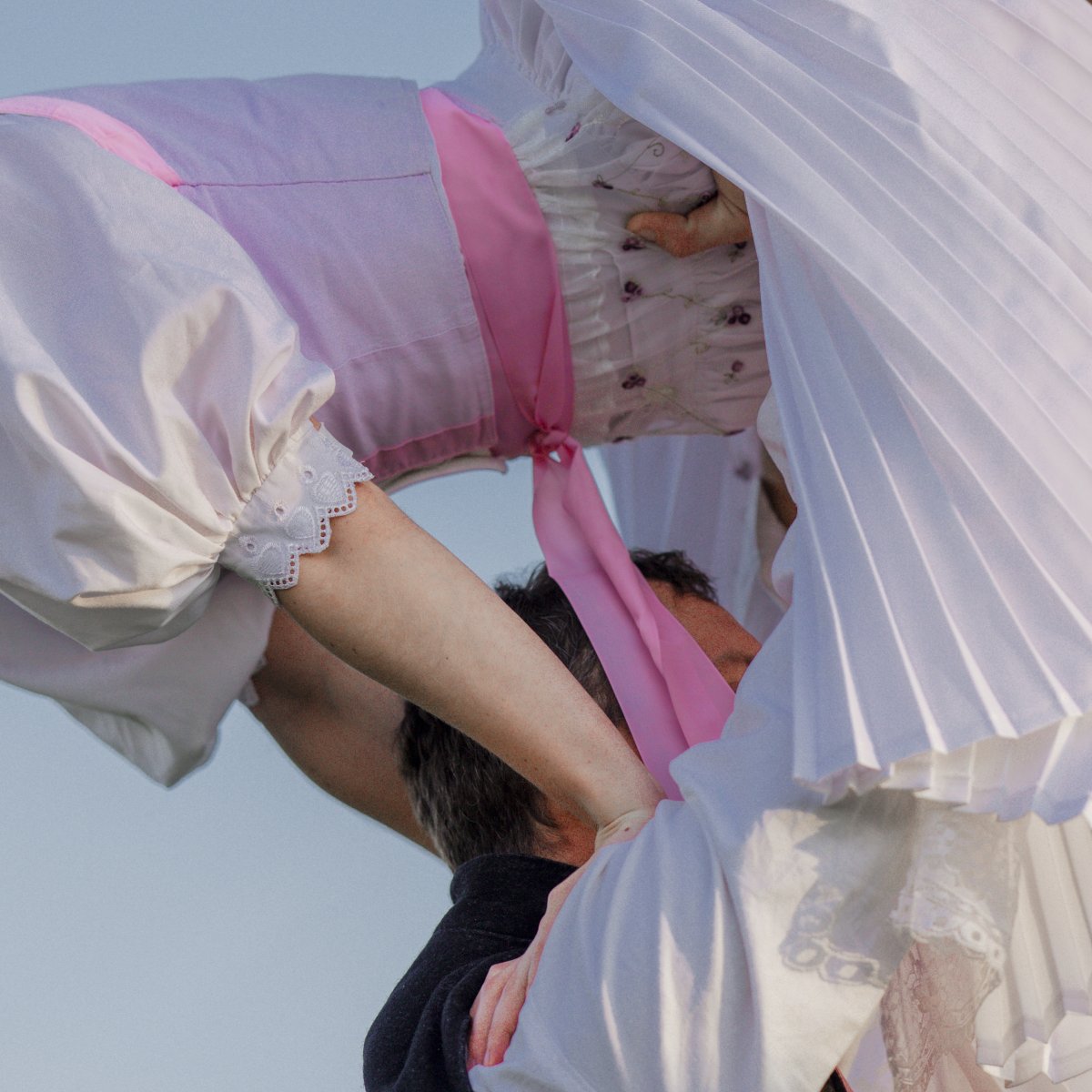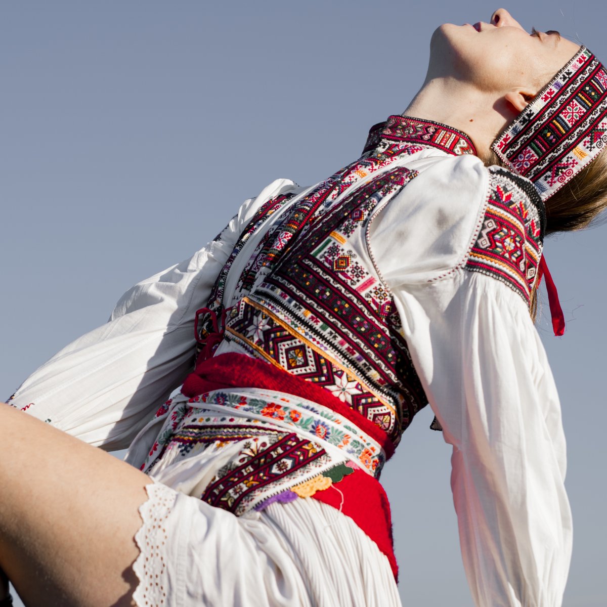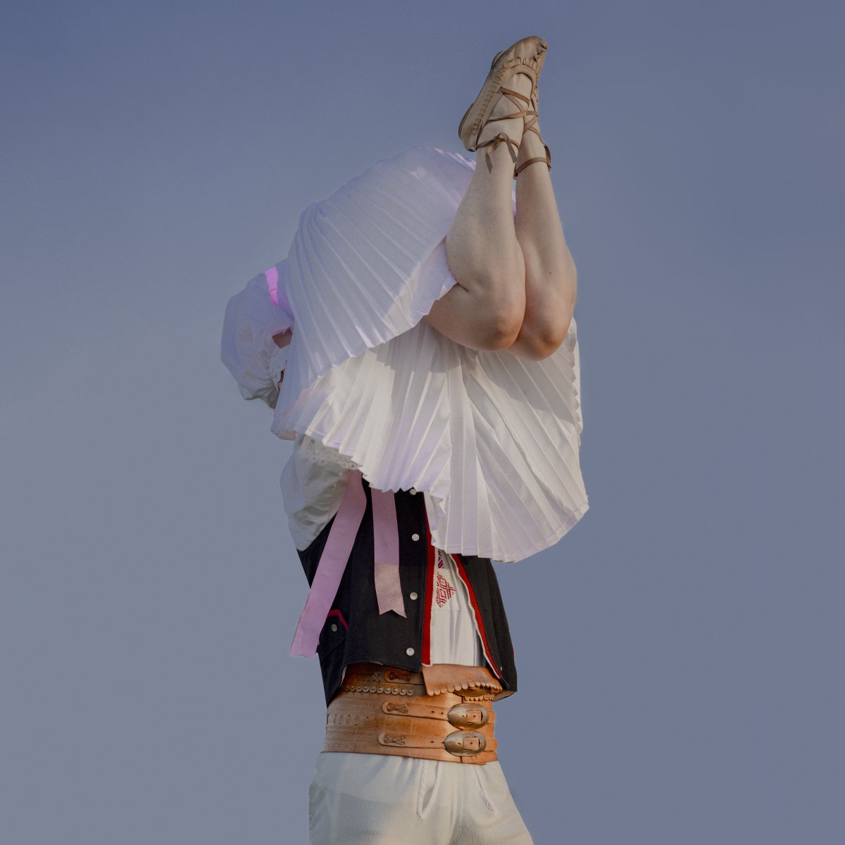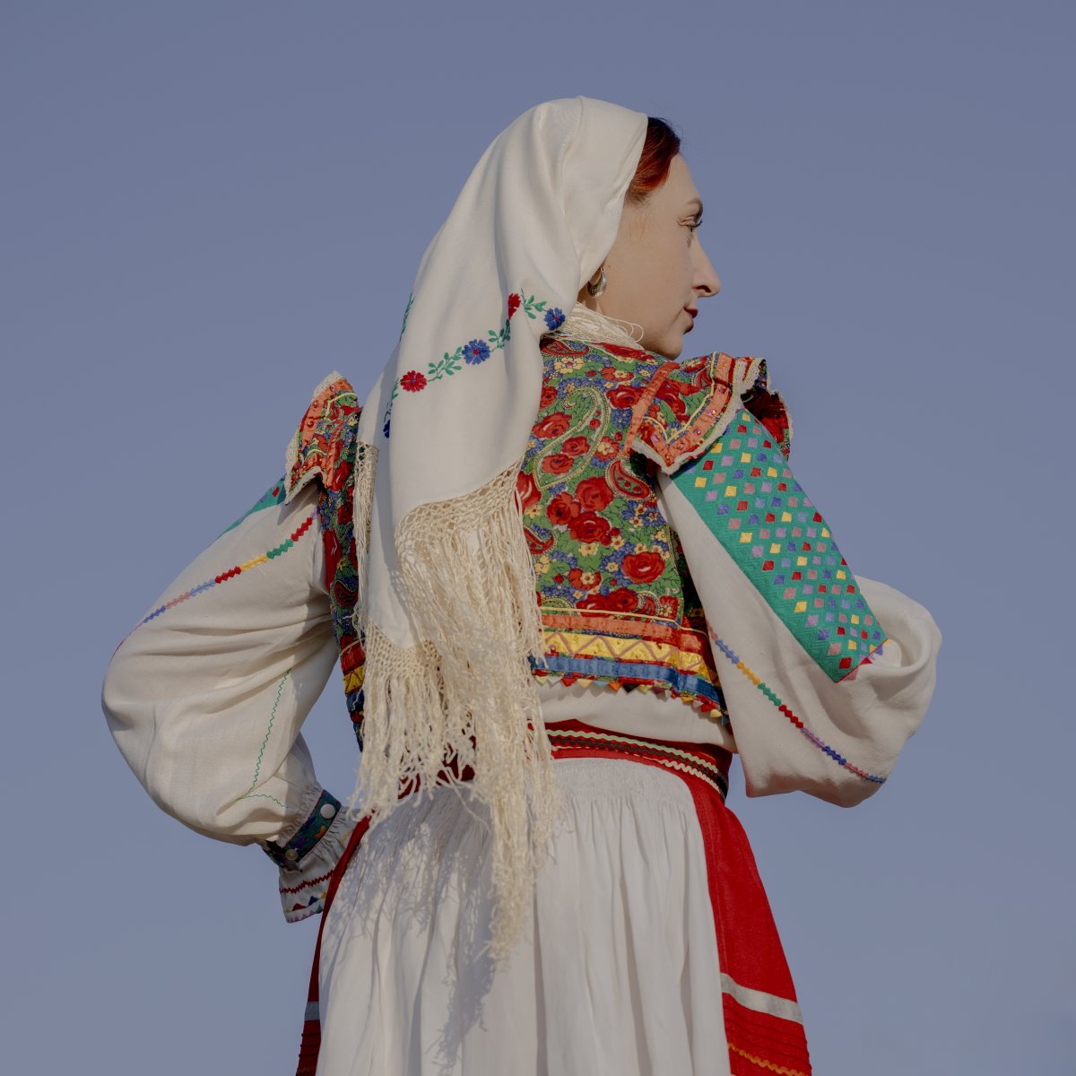 This photographic series loosely follows on from my bachelor’s thesis and is inspired by ethnographic texts that explore the body as a cultural phenomenon. The photographs draw on ritual and symbolic meanings of fertility and sexuality that were present in traditional folkloric culture and manifested, among other things, in the visual design of folk costumes. Although nudity in contrast with the folk costume may initially appear provocative or inappropriate, it in fact has deep historical roots within vernacular culture. The naked body has long been a part of rural life – especially in the context of rituals, initiation ceremonies, and seasonal festivities. This thesis expands the focus beyond the Moravian region to include costume motifs from other cultural areas, specifically Germany, Slovakia, Ukraine, and Kosovo.